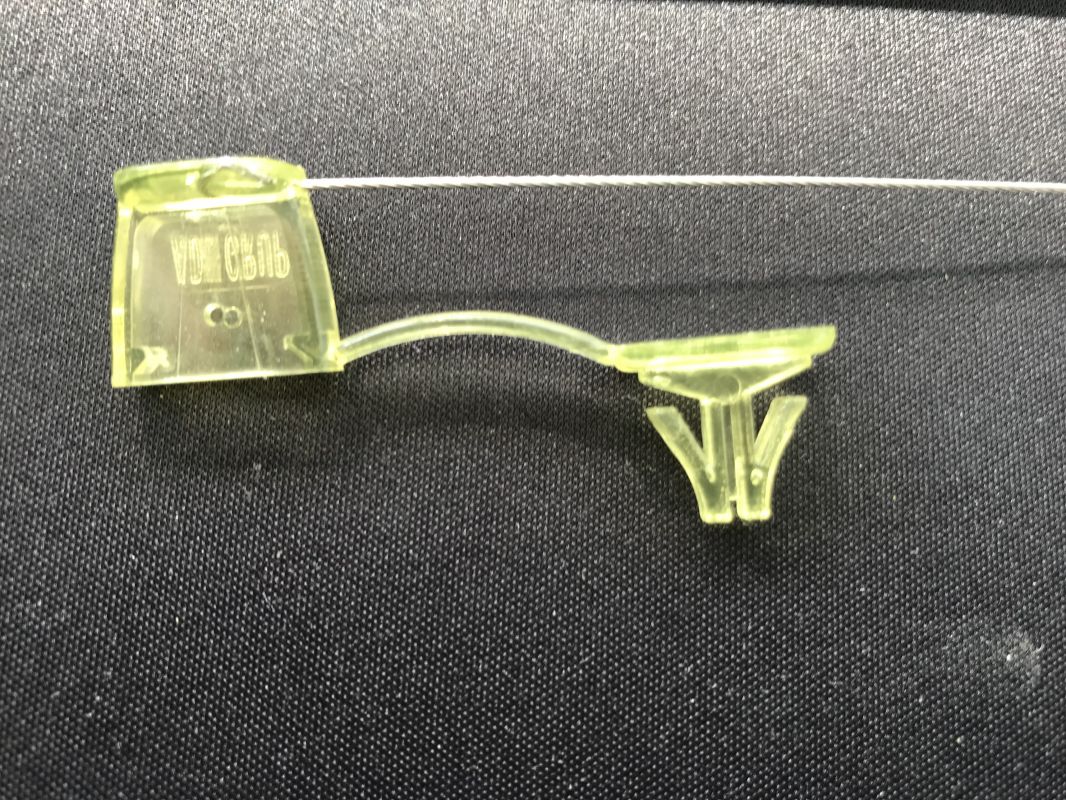 • Состоит из корпуса и защелки, которые изготовлены методом литья под давлением и соединены гибкой перемычкой. Пломба отливается одновременно с тросом нужной длины, но не более 100 мм.